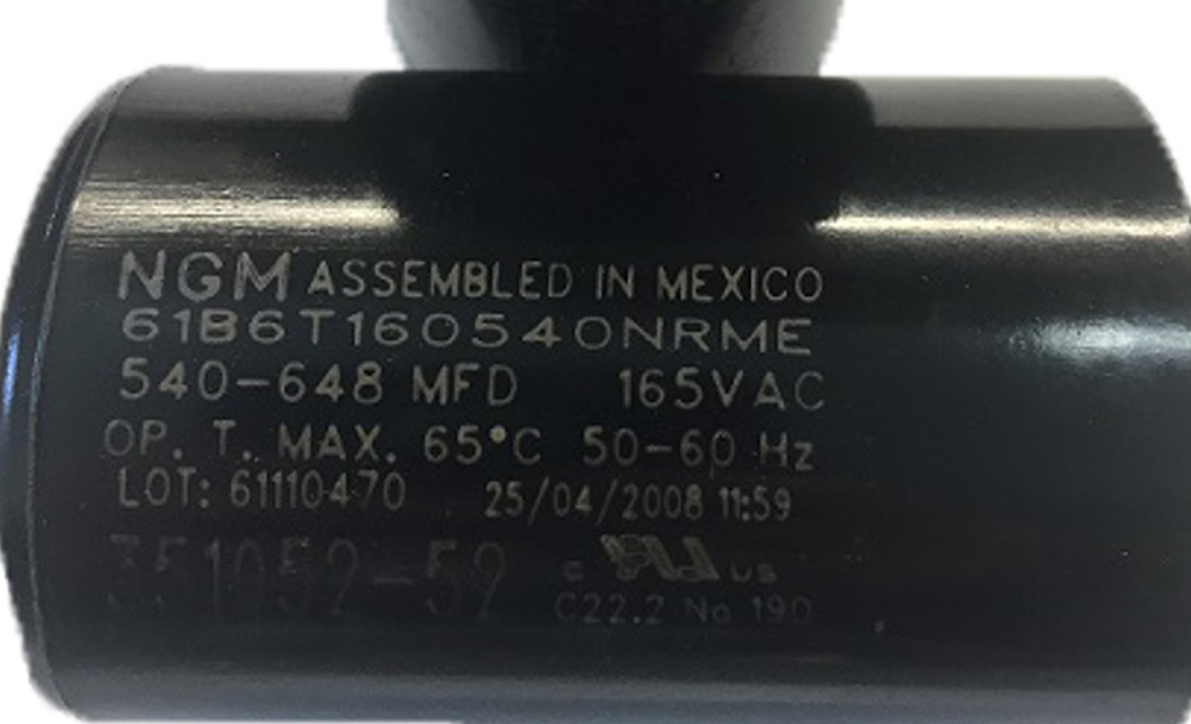 CENTURY 351052-52, 61110470, 61B6T160540NRME, Start Capacitor, 540-648 MFD, 165V