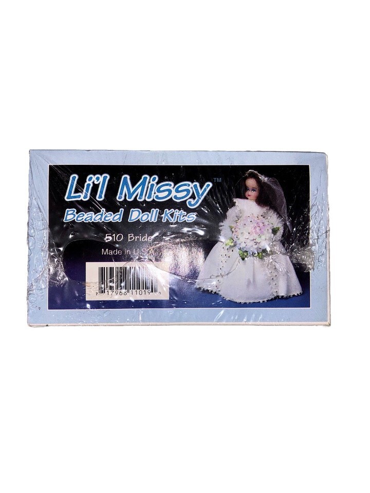 The product is a vintage Li'l Missy beaded doll kit, specifically designed for creating a "Bride" doll. For ages 10 to adult. Manufactured by Sunlyn Ind. Inc. in the United States, this brand new sealed kit contains all the necessary beads and materials to craft a detailed and beautifully beaded doll. Perfect for those interested in crafts and jewelry making, this kit offers a fun and creative way to unleash your artistic skills and create a unique bride doll as a special gift or decorative piece.
