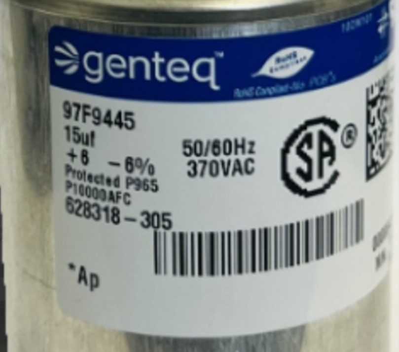 The AO Smith / Century 97F9445 (628318-305) Run Capacitor is a high-quality OEM component designed to deliver consistent motor efficiency and power factor correction in single-phase electric motors. With a capacitance of 15 ยตF 6% and a voltage rating of 370V AC, this capacitor provides stable, continuous electrical support to maintain smooth operation and reduce energy loss. Ideal for use in HVAC systems, air compressors, blowers, and pumps, it features durable construction, reliable dielectric performance, and resistance to heat and vibration, ensuring long-lasting operation in demanding environments.