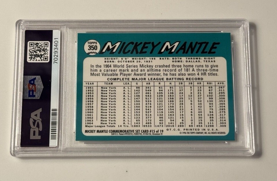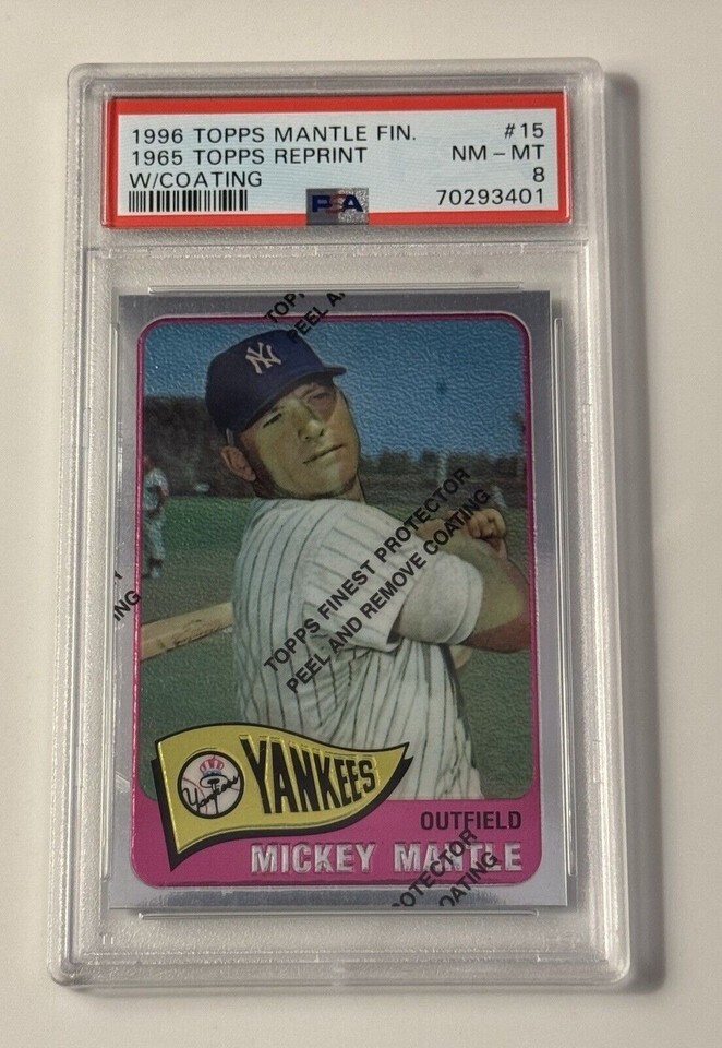 1996 Topps Finest Mickey Mantle #15 1965 REPRINT w/Coating NY Yankees HOF PSA 8*