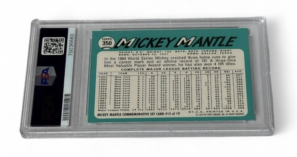 1996 Topps Mantle 1969 Reprint Series - MLB NY Yankees Baseball Card #19 - PSA 9