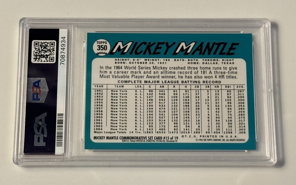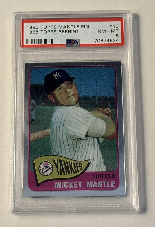 Reprint! 1996 Topps Finest Mickey Mantle* 1965 Refractor #15 MLB Yankees - PSA 8