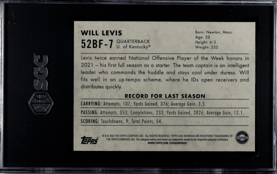 Will Levis 2022 Bowman U Chrome Football 1952 RC #52BF-7 Wildcats/Titans SGC 8.5
