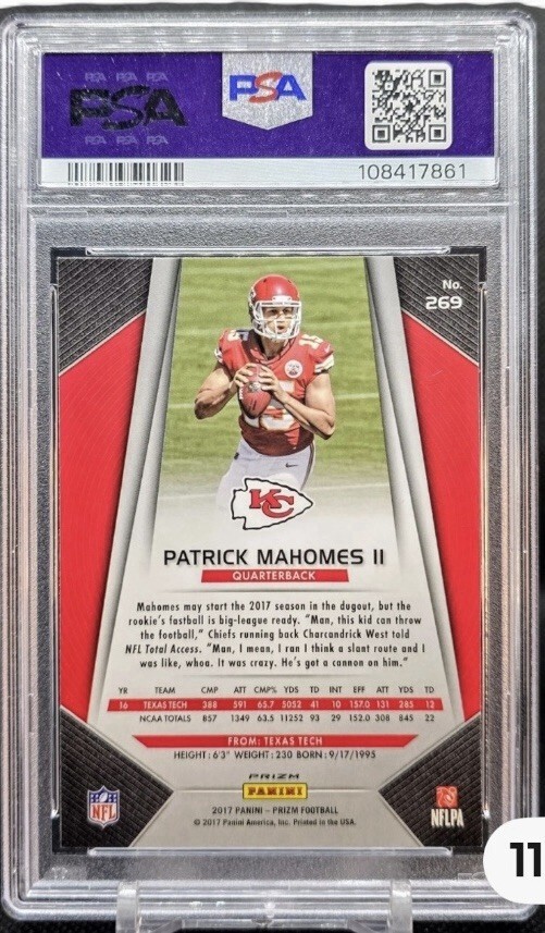 Authenticity Guarantee PATRICK MAHOMES RC 2017 PANINI SILVER PRIZM Card #269...