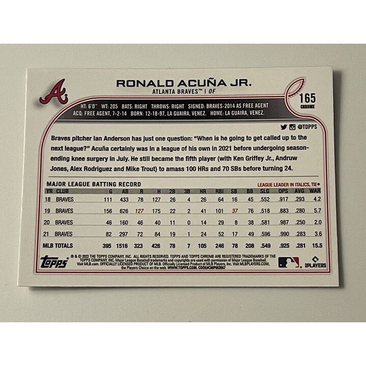 Ronald Acuna Jr. 2022 Topps Chrome Card #165 and 50 similar items