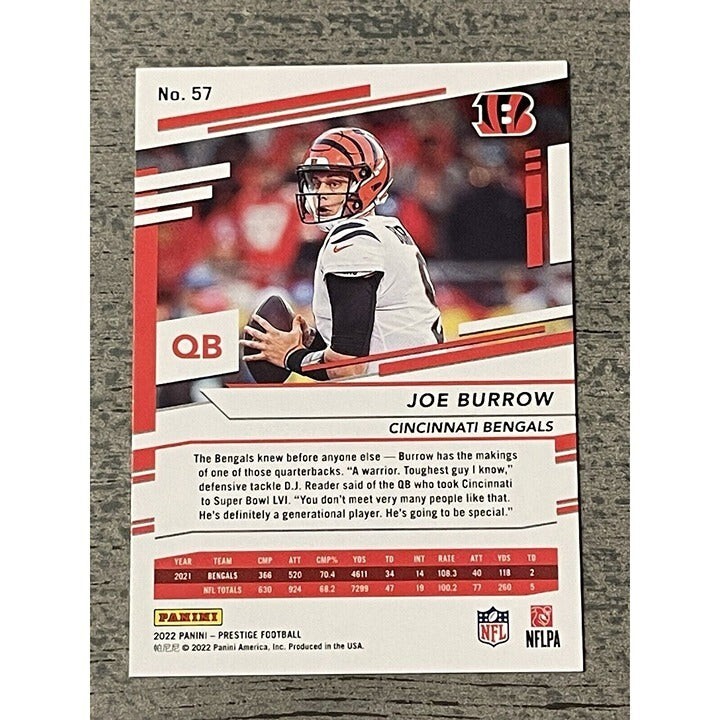 2022 Panini Prestige Joe Burrow* Bengals BASE CARD #57 - NFL Cincinnati Bengals
