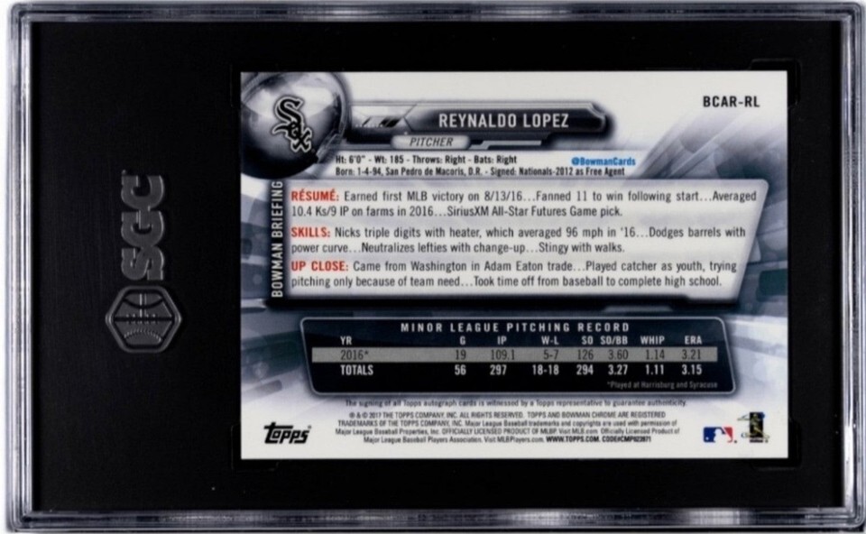 2017 BOWMAN CHROME BCAR-RL REYNALDO LOPEZROOKIE AUTO MLB ATL BRAVES SGC 10/Auth