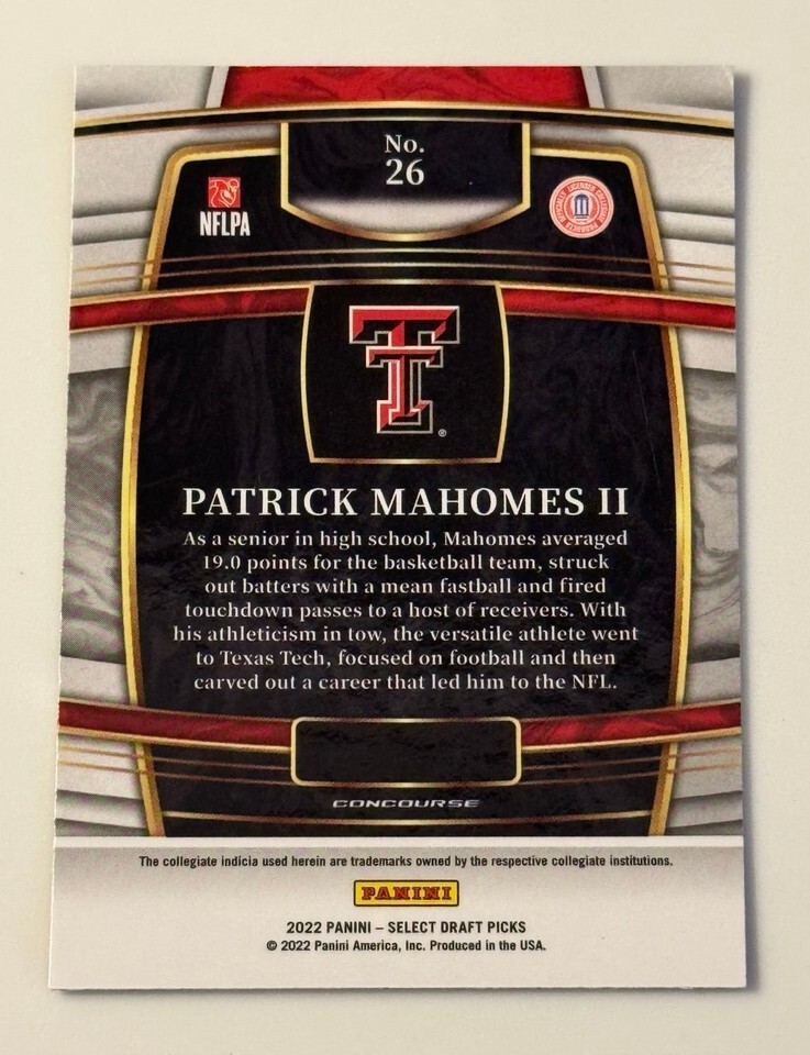 2022 PANINI SELECT DRAFT PICKS BLUE #26 PATRICK MAHOMES II CONCOURSE TEXAS TECH