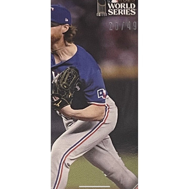 For all the baseball fans out there, check out this exclusive 20/49 Jon Gray Topps Now sports trading card. This card features a beautifully designed aluminum and card stock material, measuring 35 Pt. thick. Manufactured in the United States in 2023, this original and licensed reprint card is part of the 2023 Topps Now set and showcases Jon Gray pitching in relief for the MLB Rangers during the 2023 World Series.