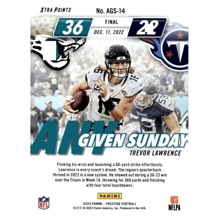 2023 Panini Prestige Trevor Lawrence Any Given Sunday - NFL Jaguars Card #AGS-14