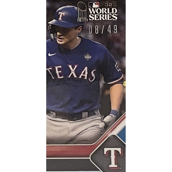 This is a fantastic 8/49 Texas Rangers baseball card from the 2023 Topps Now set. It commemorates the team's achievement of hitting home runs in the most consecutive games, with a limited edition of only 10 produced. The card features aluminum and card stock material, measures a standard size of 35 Pt. thickness, and is an original release from Topps. The card is not autographed but includes exclusive parallel/variety features. It is perfect for any collection of sports trading cards or Texas Rangers memorabilia. Don't miss out on adding this rare card to your collection!
