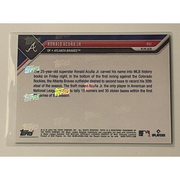 2023 Topps Now Ronald Acuna Jr.* 1st In MLB History 15 HR & 30 SB - Braves #451*
