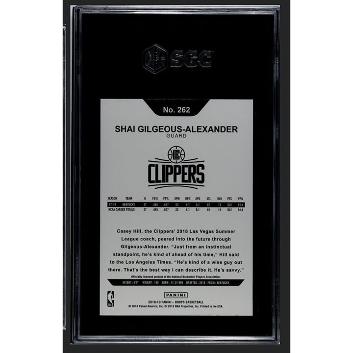 Shai Gilgeous-Alexander RC 2018-19 Panini NBA Hoops NBA LA Clippers 262 SGC 9.5