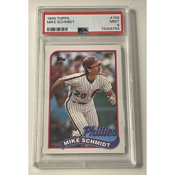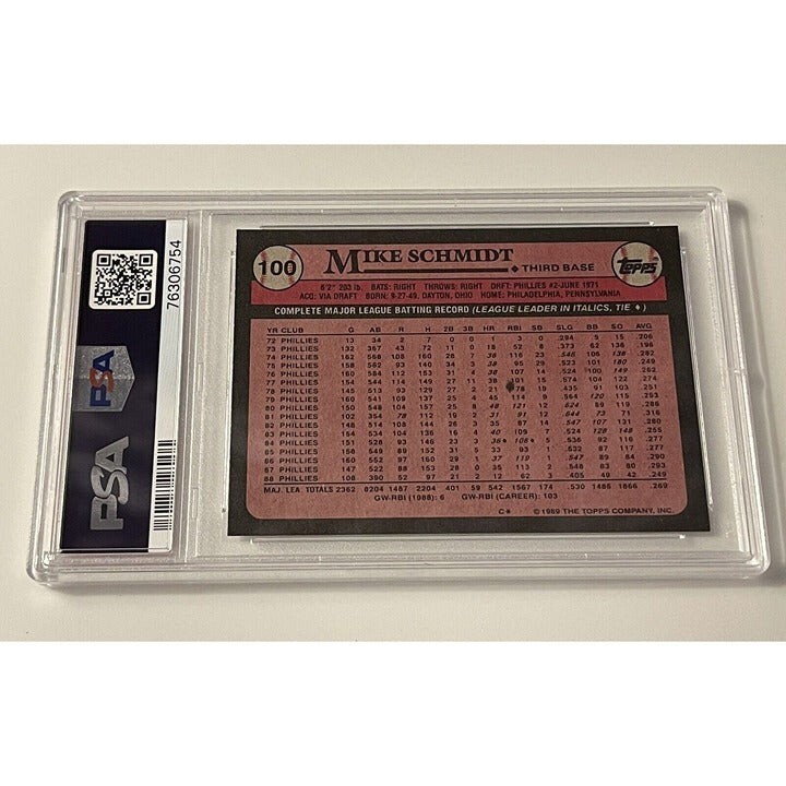 1989 Topps Mike Schmidt PSA 9 Third Base Philadelphia Phillies Card #100 Vintage