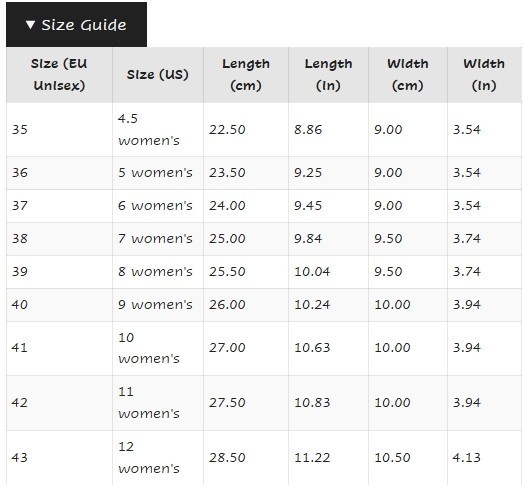 | EUR Shoe Sizes: |