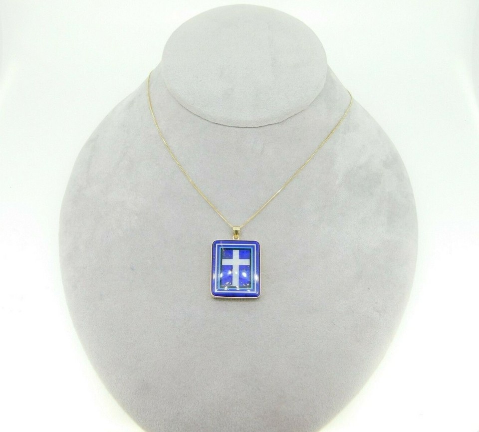 Kaufmann 14K Gold Intarsia Pendant with Genuine Natural Opal Cross (#J4373)