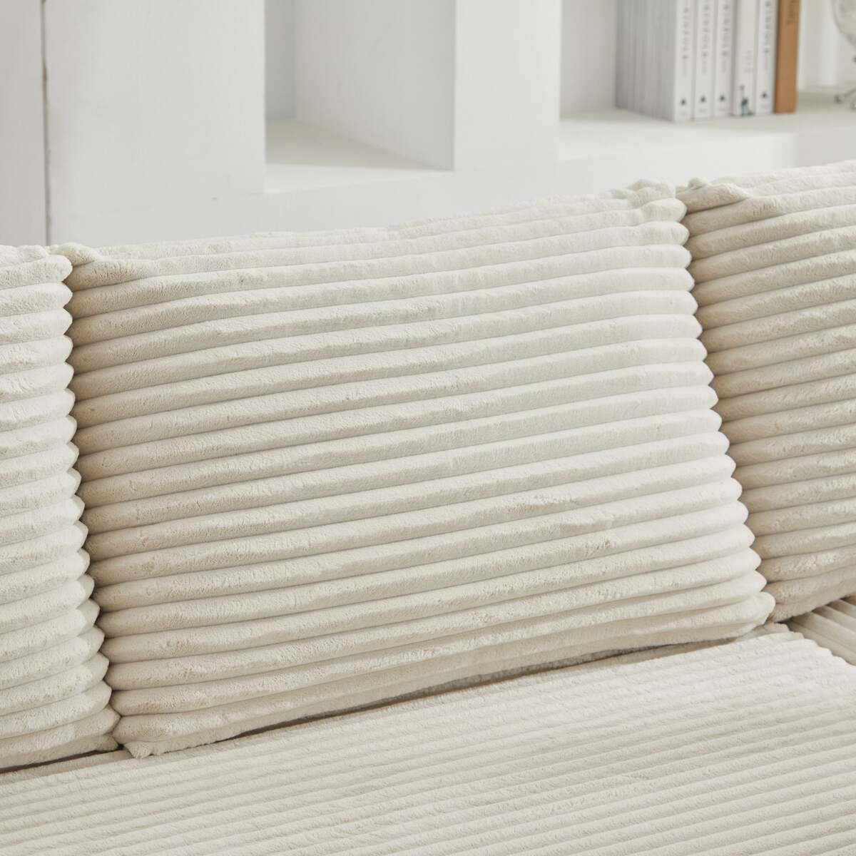 Plush Corduroy Fabric: Our sofa set is wrapped in premium corduroy, giving you unrivaled softness and warmth. The upgraded material offers better breathability and stain resistance, making the fluffy couch easy to care for and clean. The unique texture and soft sheen make it stand out, providing gentle pampering no matter the season