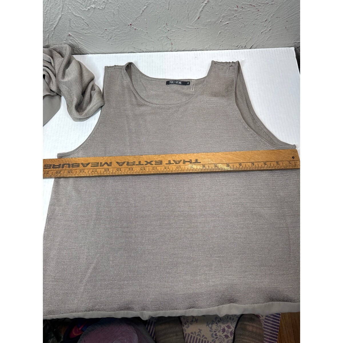 Nic + Zoe Long Silk Blend Cardigan Tank Two-Piece Set Tan Women's Size XL