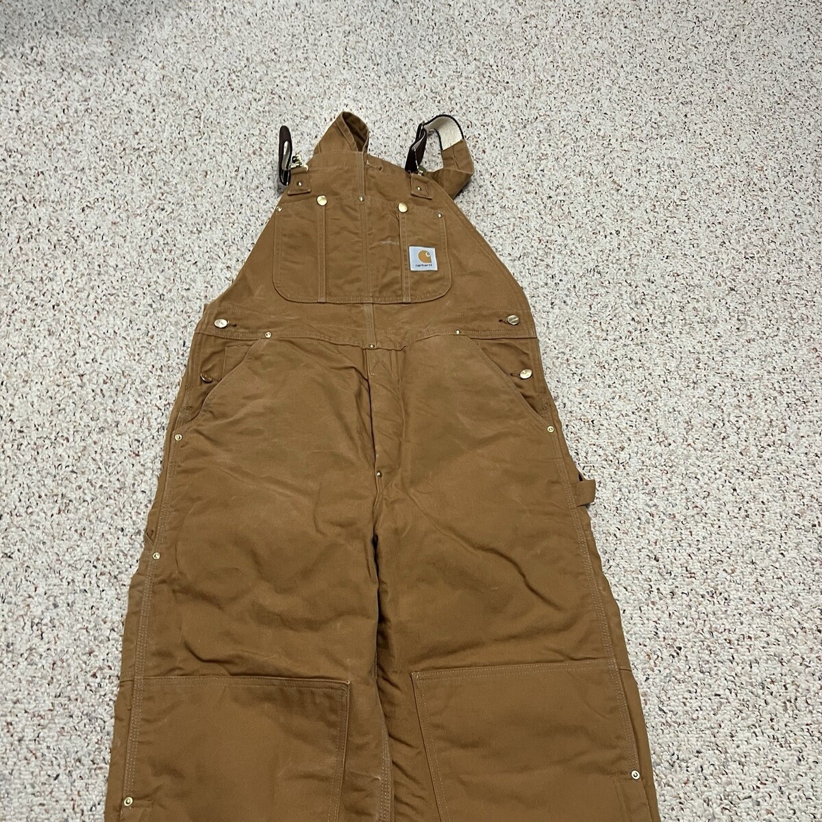 Vintage Carhartt Overalls Mens 36x32 Brown Quilt Lined Double Knee USA Union