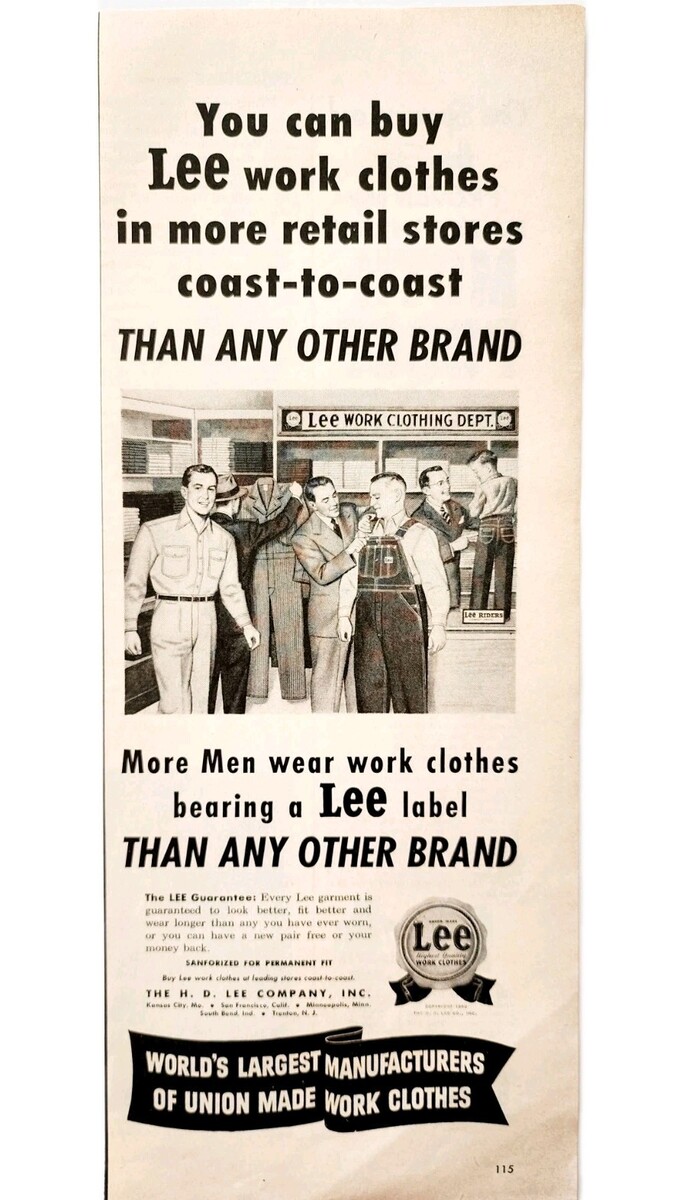 1950 Lee Work Clothes Denim Jeans Overalls Advertisement Labor Fashion DWJJ9