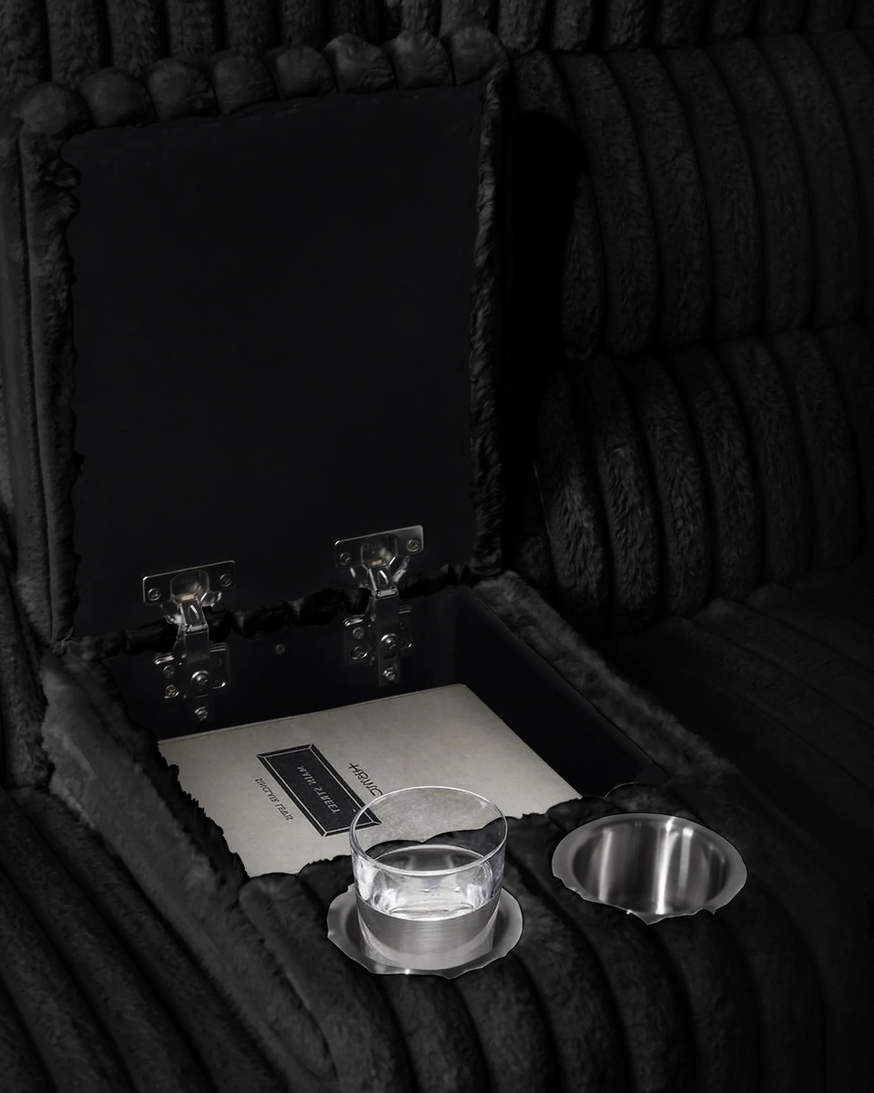 and 4 stainless steel cup holders. Perfect for modern living rooms, it combines plush comfort,