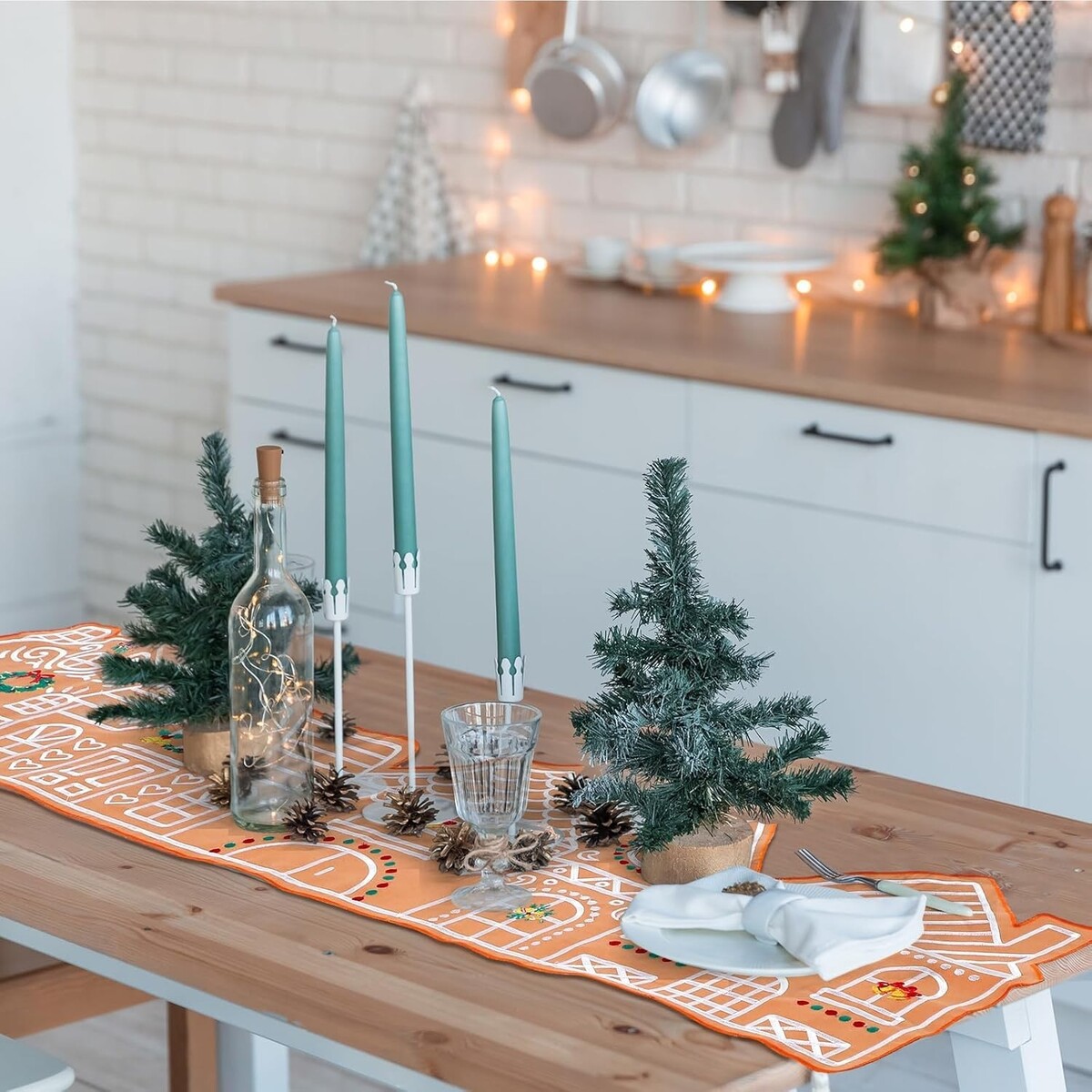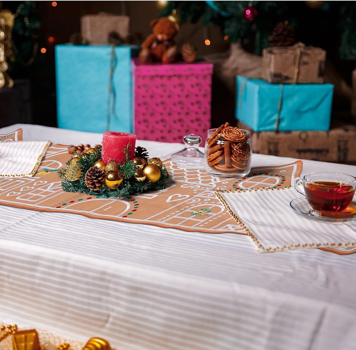purchasing this package gives you one gingerbread house shaped table runner, which is ideal for Christmas and festive table setups; It's equally suitable for kitchens, dining rooms, and fireplace mantels, making it a versatile choice for home decoration or a thoughtful holiday gift for friends