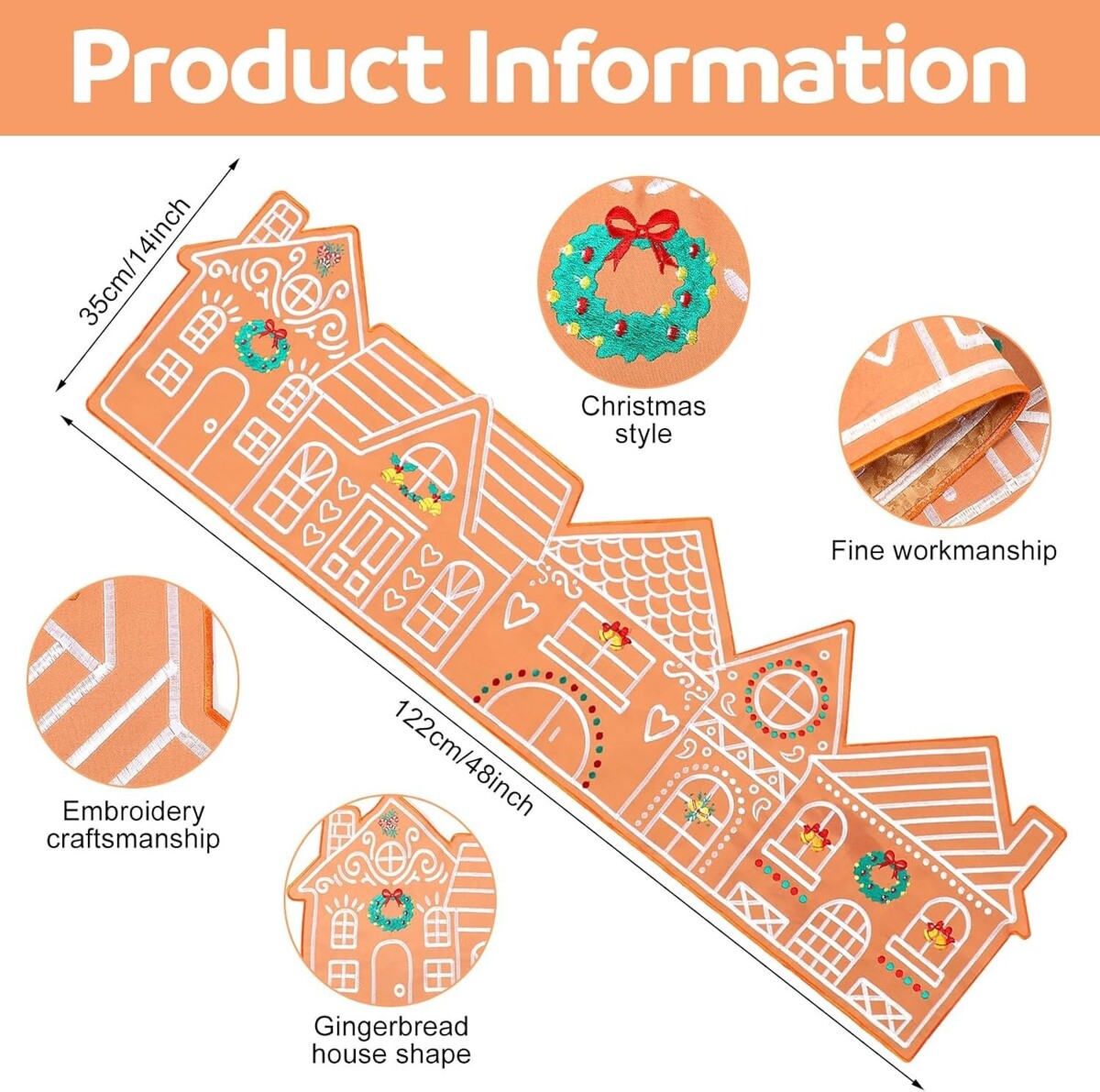 measuring approx. 13.78 x 48.03 inches/ 35 x 122 cm, our gingerbread table runner is sized to fit a variety of home and kitchen table shapes; Its compact and lightweight design makes it easy to store when not in use, ensuring it doesn't occupy excessive space; Seamlessly fit it into your setup for a stress free holiday