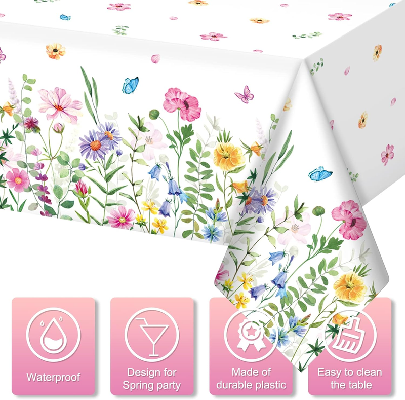 3Pcs Spring Floral Plastic Tablecloth,Pink Purple Blue Flower Butterfly Disposab