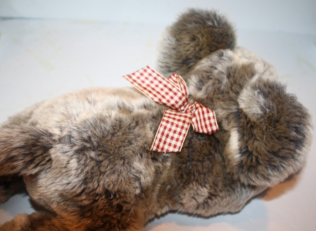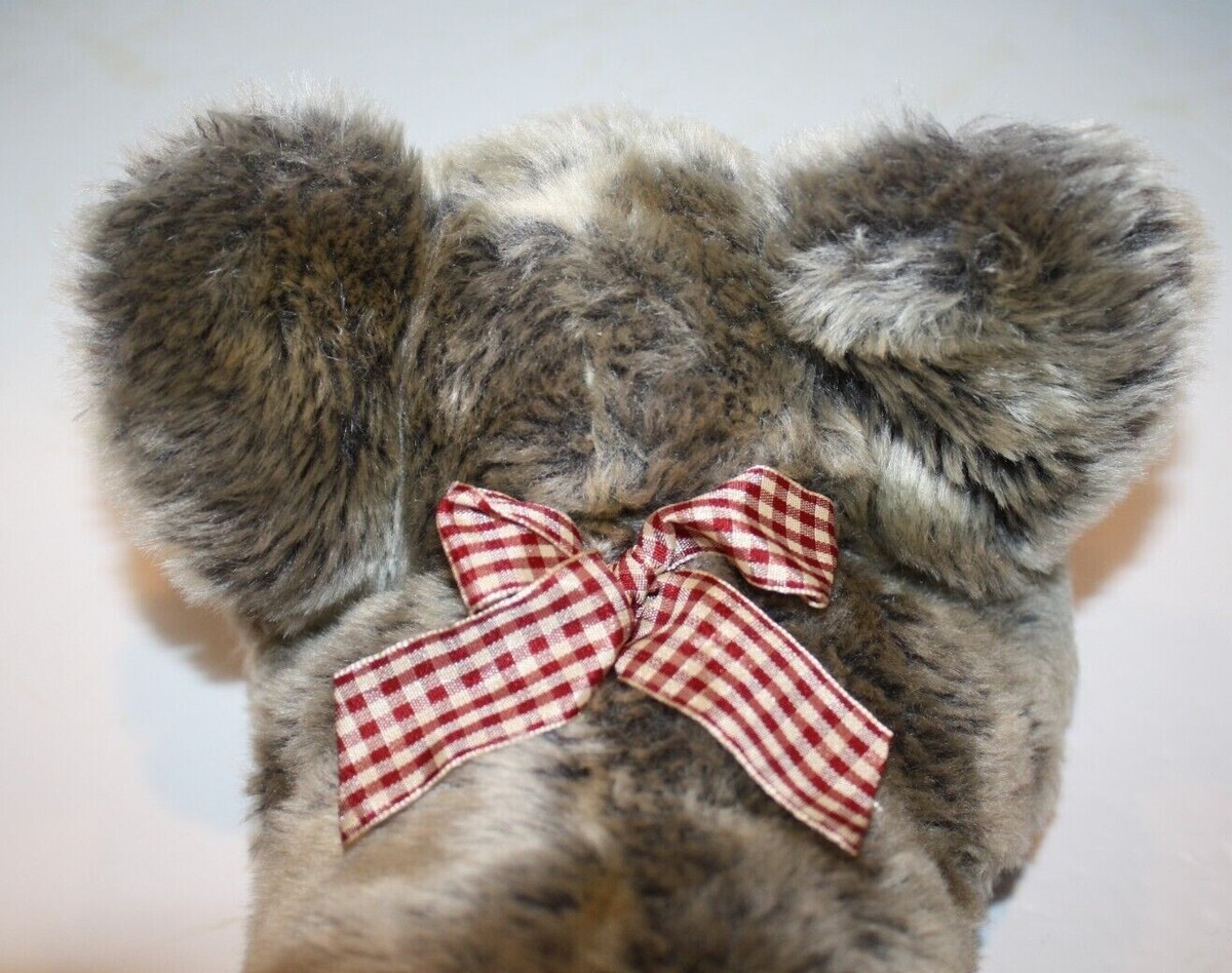 Dan Dee Elephant 14" Gray Plush Lying Tummy Gingham Bow Stuffed Animal Soft Toy