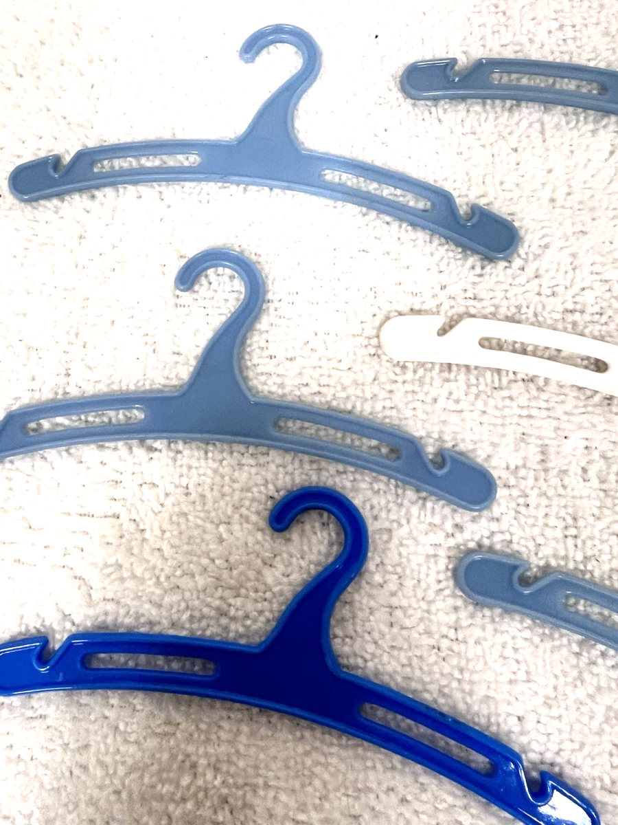 Lot of 6 Vintage Hard Plastic Doll Clothes Hanger Blues & White 4 7/8 Wide