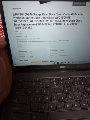 Range Oven Outer Door Glass Compatible With Whirlpool (Black) Part # WPW10409946