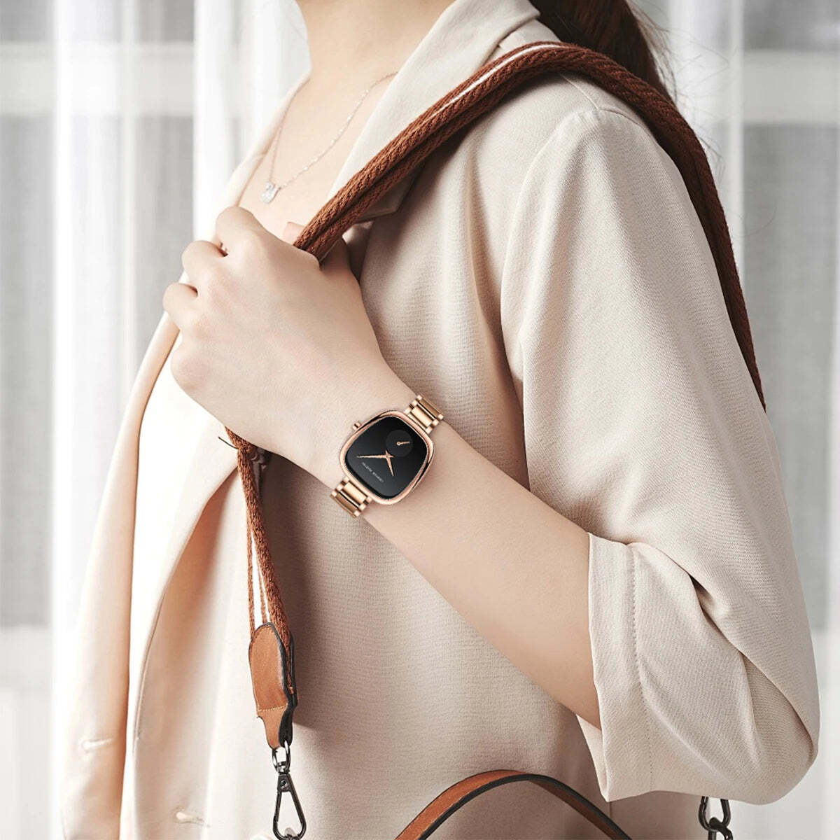 2025 New Women's Quartz Wristwatch 34mm Wine Barrel Rose Gold Black Stopwatch Fa