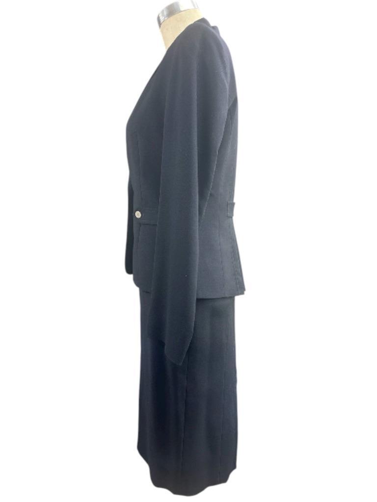 Gorgeous Vintage VALENTINO Navy Blue Wool Skirt Suit Size 42IT/6US Made in Italy