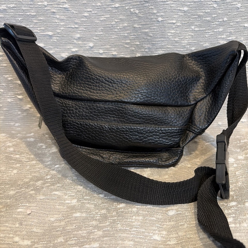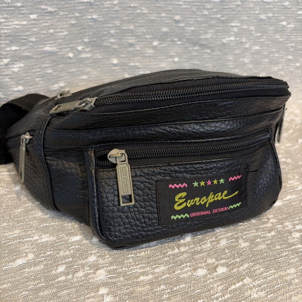 VINTAGE Leather Europac Body Bag Fanny Pack 80s Black