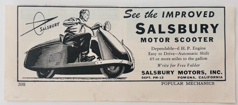 1948 Salsbury Motor Scooter Advertisement and similar items