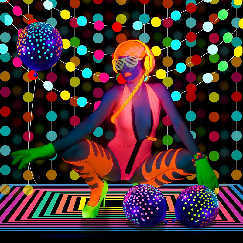32 Pcs Glow in the Dark Party Supplies Halloween Neon Party Favors with 25 Fluorescent Balloon 6 Rolls 98.4 Ft UV Blacklight Luminous Tape 14.4 Ft Neon Streamer Garland for Adults(Clear Dot)
