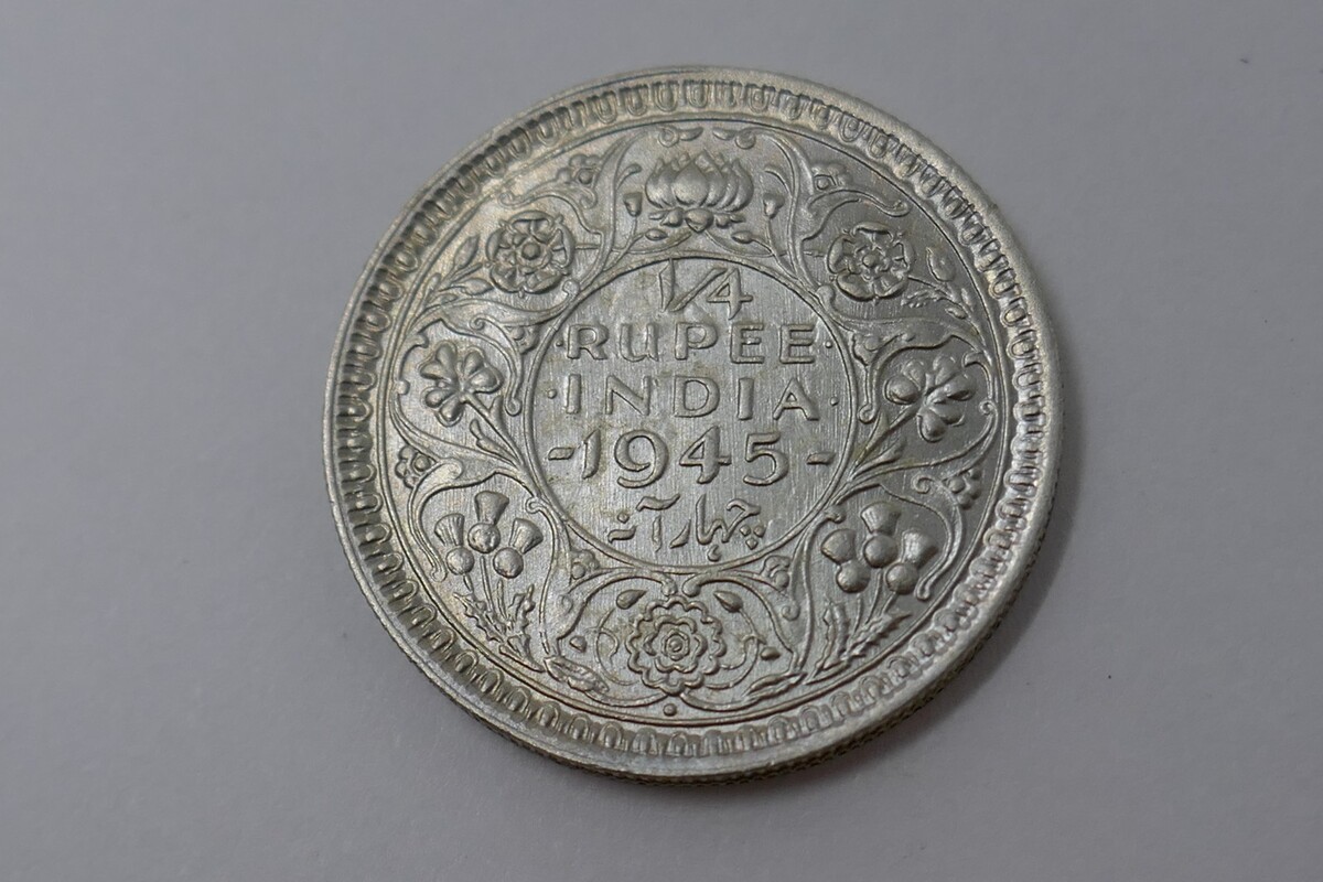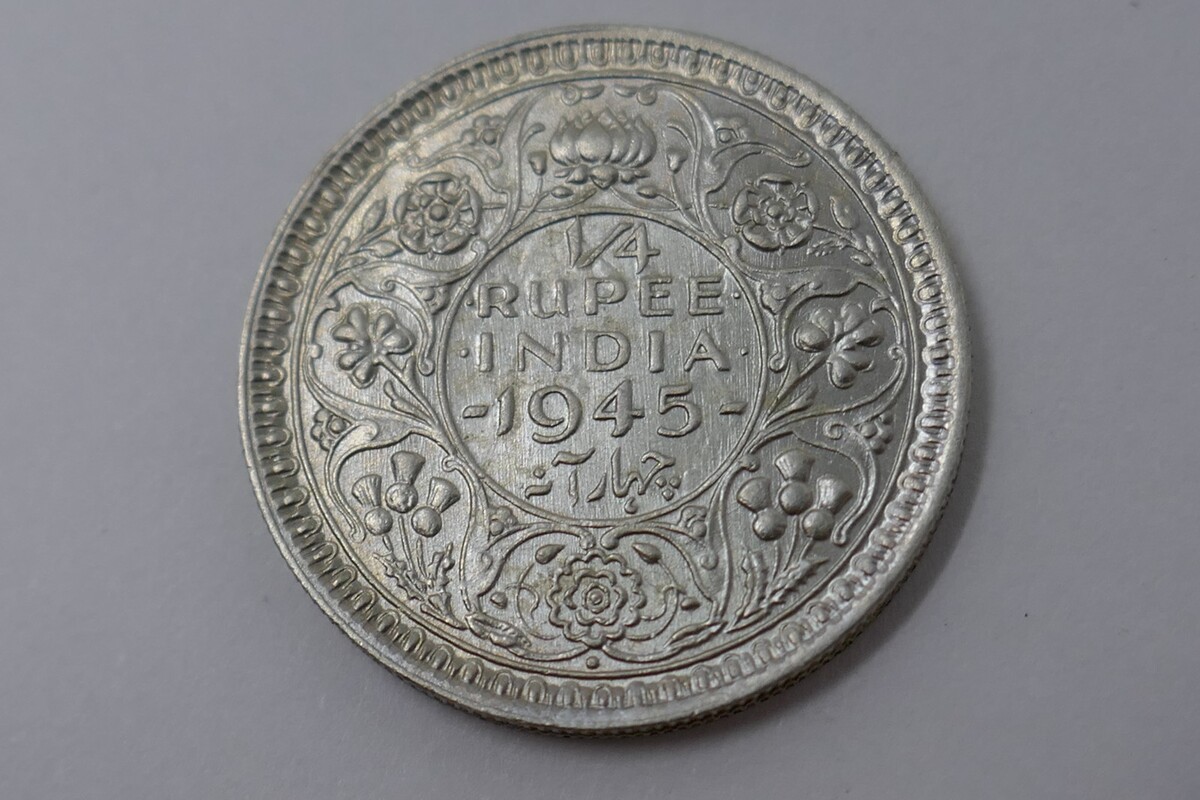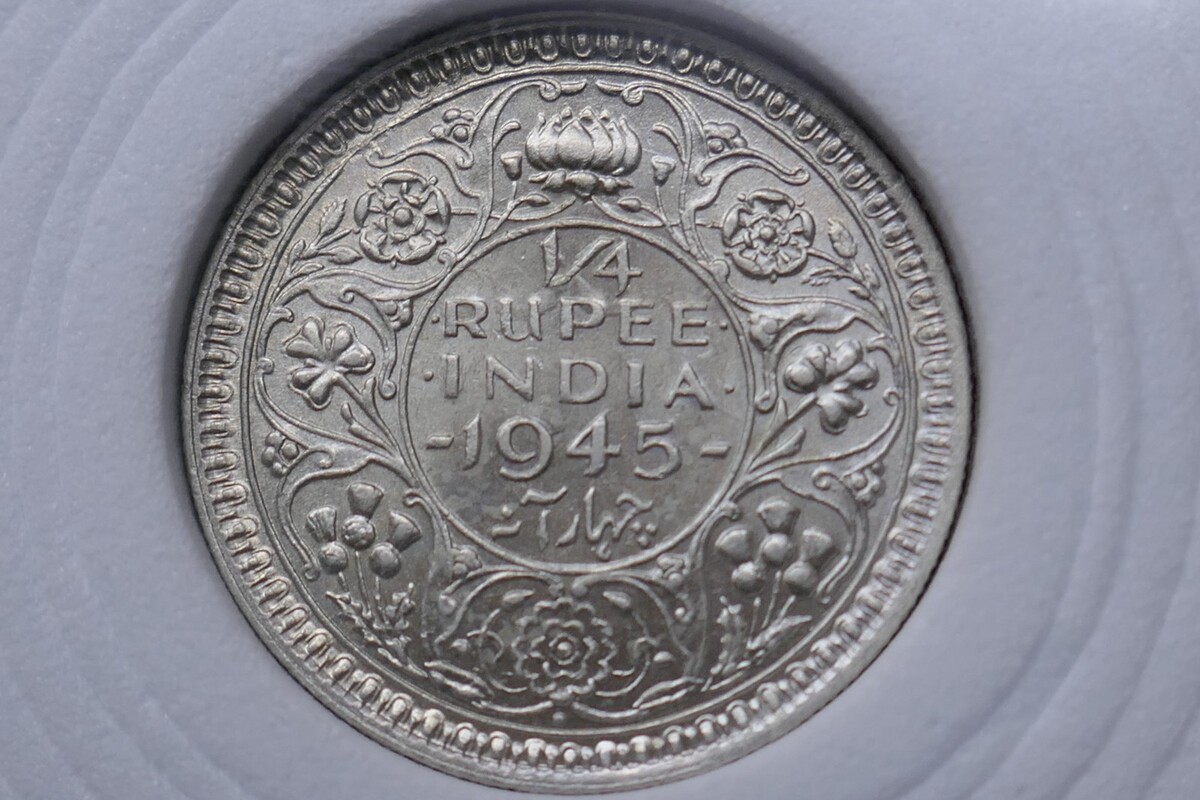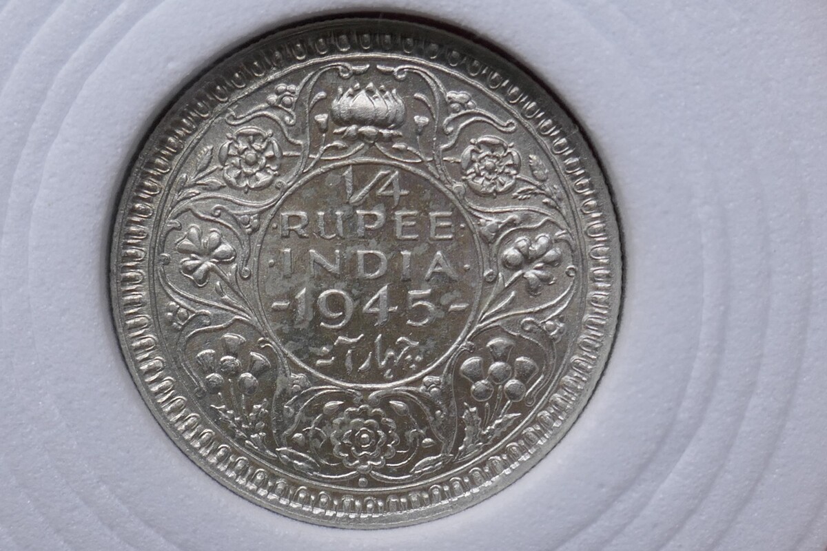British India 1945 George VI 1/4 Rupee Silver Coin