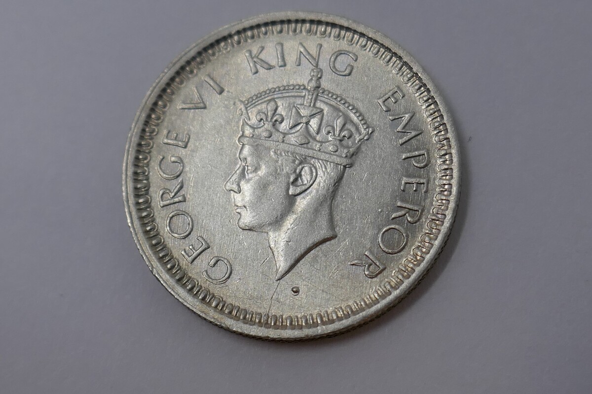 The George VI 1/4 Rupee Silver Coin is a historical piece of currency from India during the British colonial period. Made of 50% silver, this coin carries a denomination of OE Rupee and was minted in 1945. The coin features the portrait of King George VI and is part of the KM Number 547 series. Although uncertified and ungraded, this piece holds significance as a part of Indian numismatic history.