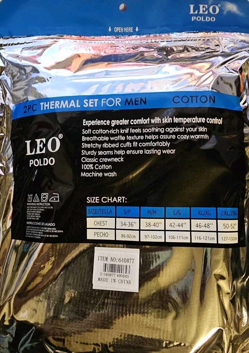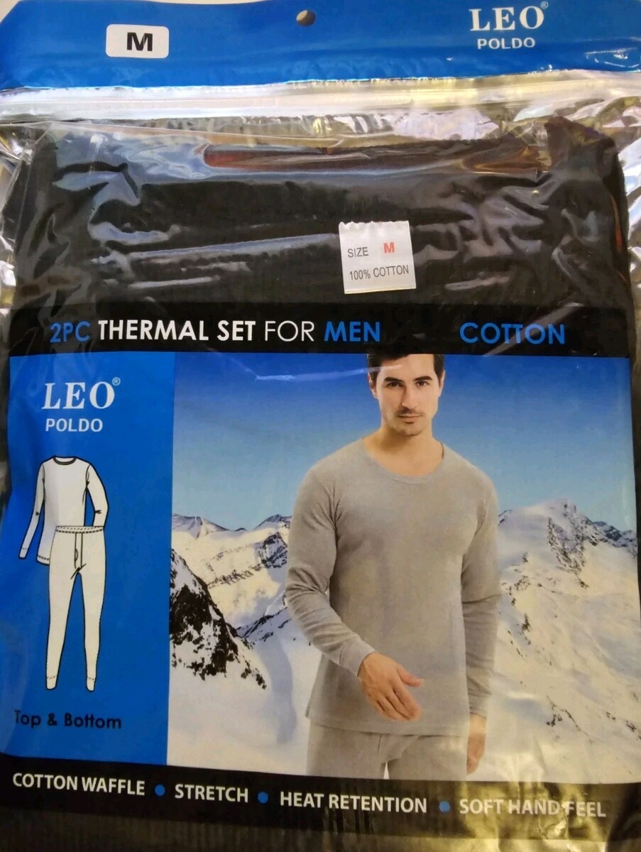 Leo Poldo 2pc Thermal set for men cotton waffle stretch heat retention Size M