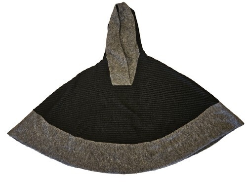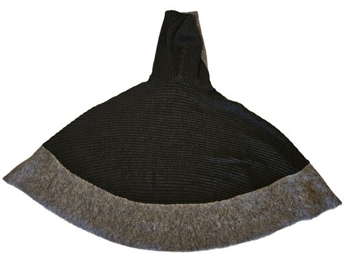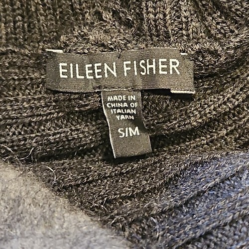 Eileen Fisher Merino Wool Mohair Poncho Sweater Women S M Black Gray Hooded Wrap
