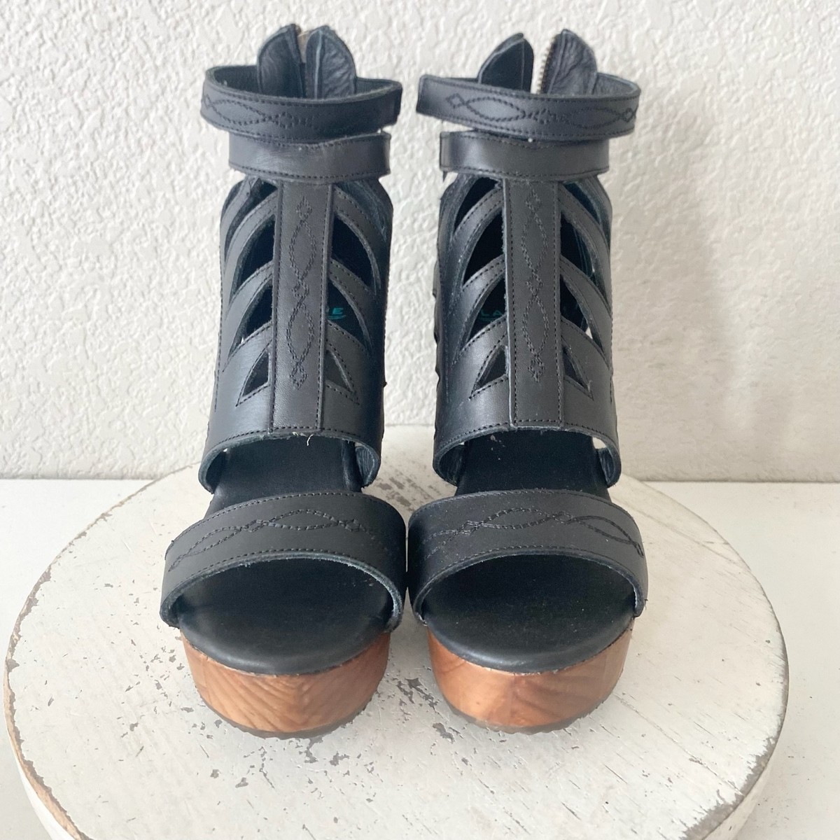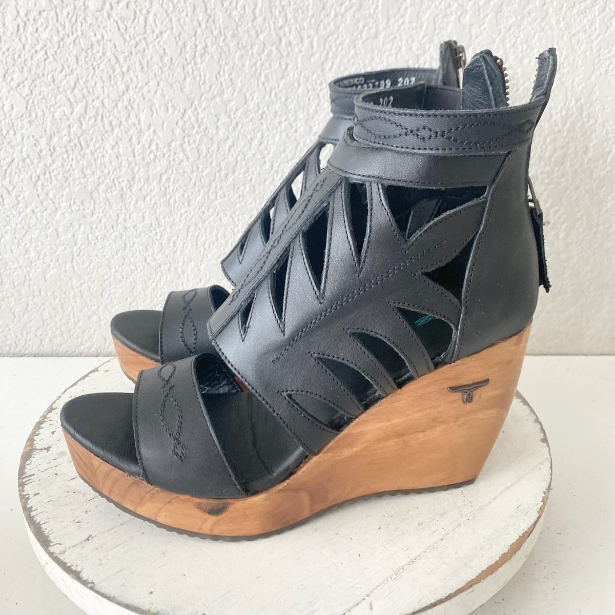 NEW Lane Boots BECCA Womens Black Wedges 8.5 Western Sandals Cowgirl Wooden Heel