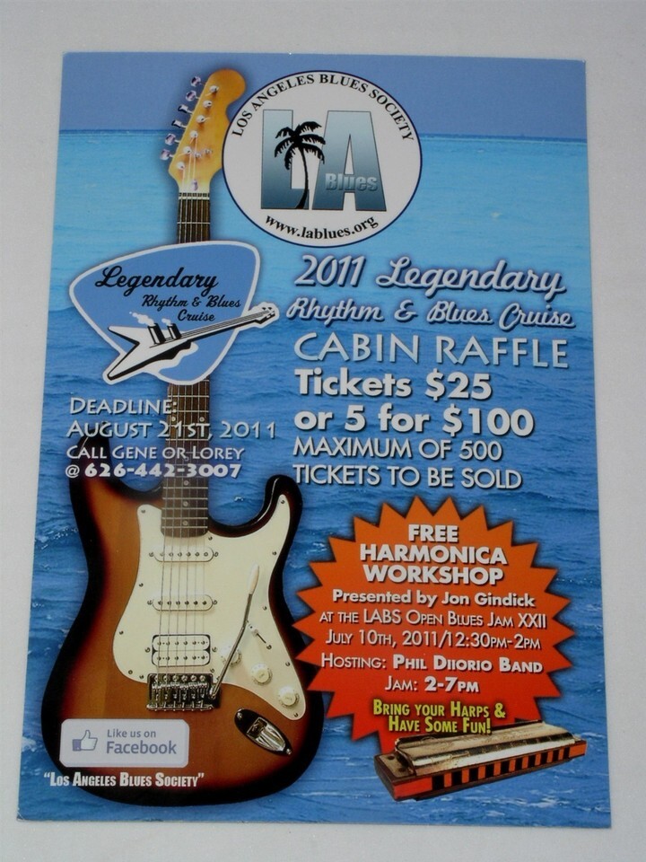 This is a double sided 4" X 6" promo concert card Nick's Taste Of Texas, Covina California. Acts: The R B Bombers with special guests Hot Roux. Other side on the 2011 Rhnythm Blues Cruise. A terrific item for the fan or collector.