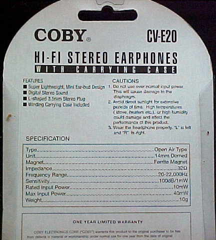 Coby CVE20 Stereo Earphone.