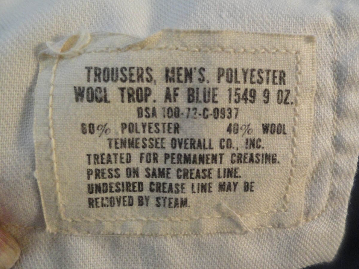 1972 TROUSERS MENS TROPICAL POLY WOOL AIR FORCE SHADE 1549 9 OZ TYPE I 36S