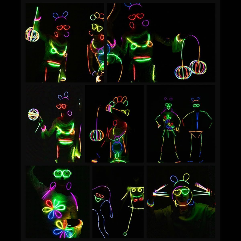 UNPARALLELED LIGHT UP PARTY FAVORS: Enough glow in the dark party favors to create a magic world! Glow sticks party pack are changeable into anything, like glow necklaces, glow bracelets, flower/ball, luminous eyeglasses, skull glasses,which let your eyes, wrists and neck glow and be cool. Take this big hit and get the party started
