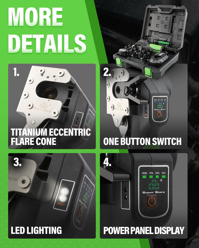 [Rechargeable Portable Design] This powered flaring tool features a long-lasting lithium-ion battery and a compact, lightweight body. Work freely in tight spaces?perfect for HVAC technicians and plumbers.It can flare 5/8" copper pipe 135 times without effort. Working voltage: 11.1V, power: 22W/1.5A. Full charging needs 100 mins.