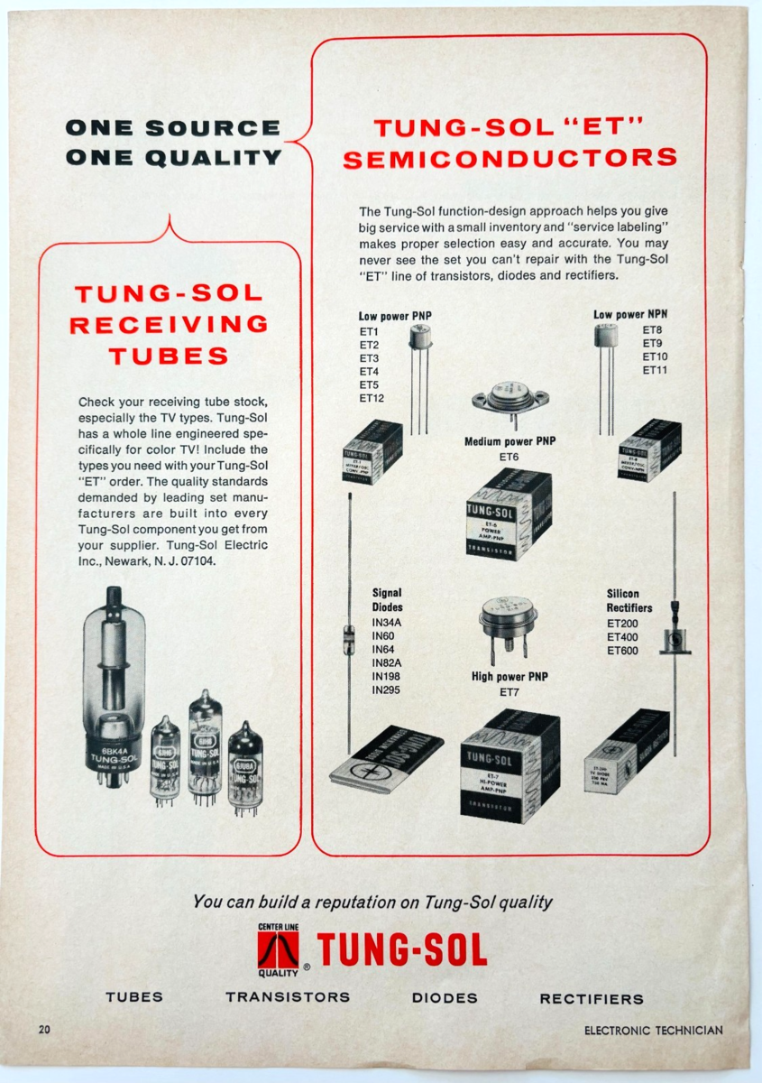 1965 Tung-Sol Tubes Radio Parts Advertisement Vintage Electronics DWU16C