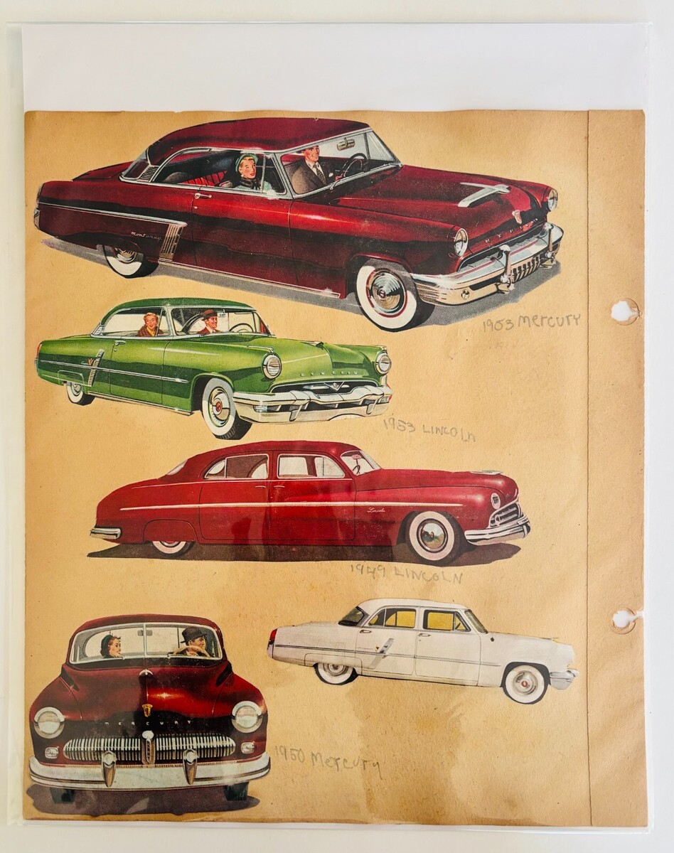 1940-50s Lincoln Mercury Cut-Out Ephemera Mounted Automobilia Ephemera DWJJ16