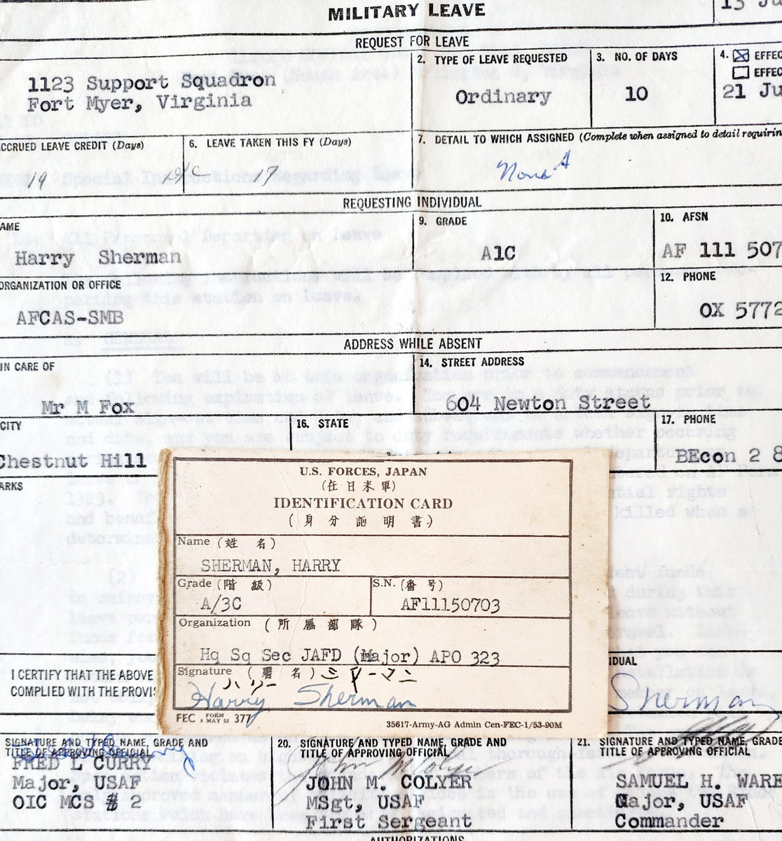 1961 Military Leave ID Card Lot Harry Sherman US Forces Japan Vietnam Era DWRR3