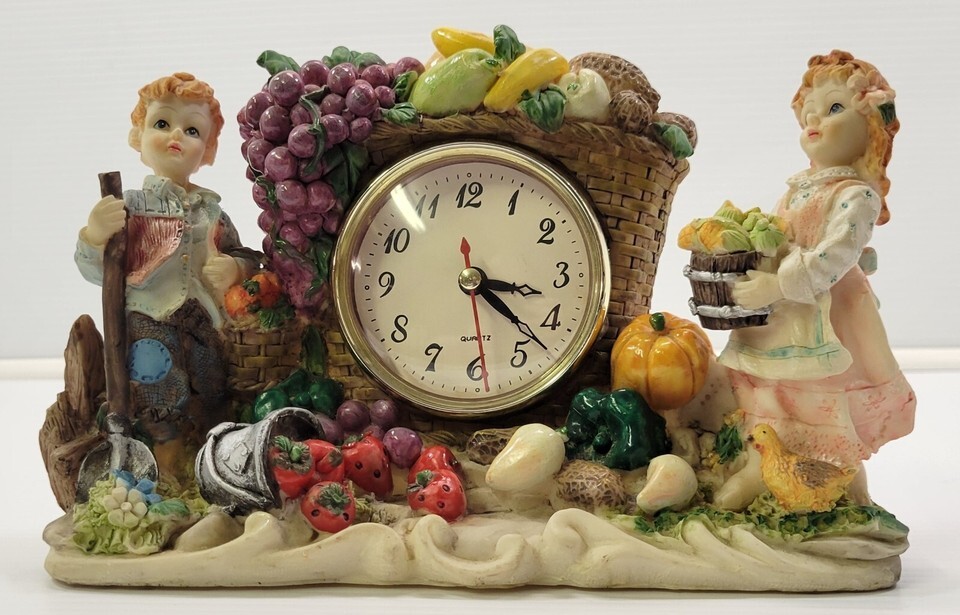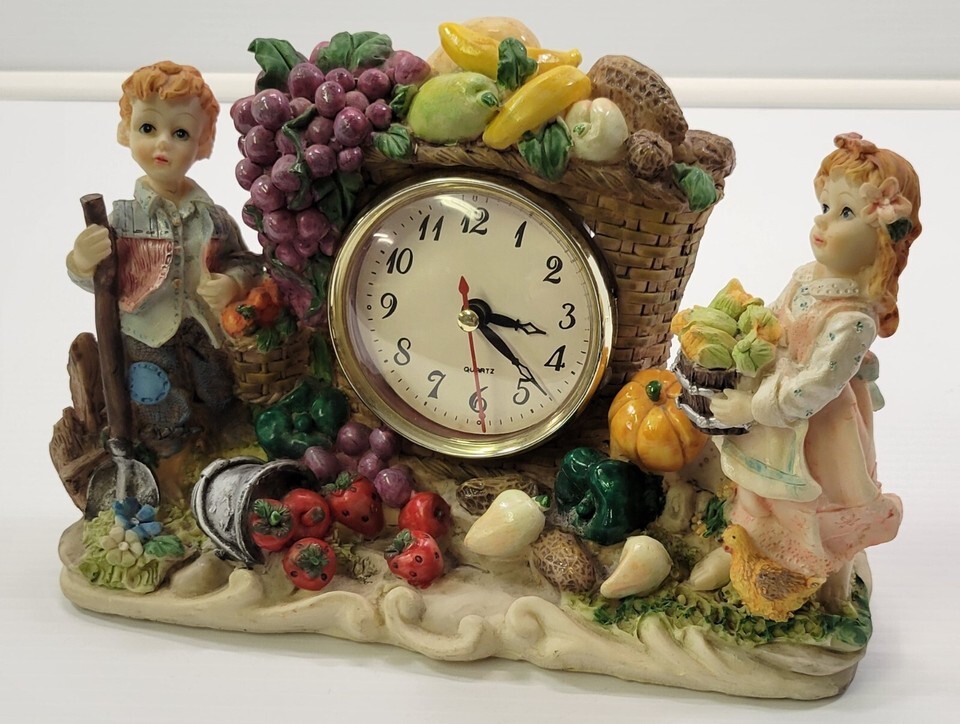 AP) Tabletop Mantel Country Boy Girl Fruit Clock Battery Analog Shelf Clock